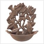 Nostalgic styling abounds in this quaint wall-mounted pocket holder, finished in weathered auburn and crowned with a leafy bird-and-branch bas-relief. A perfect decorative cradle for birdseed, water, or even a tiny tender plant; it adds a gently sentimental touch! Iron. 6 1/2" x 3 1/4" x 7 1/2" high.